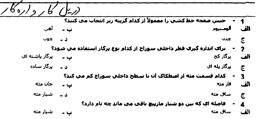 صفحه محصول - سوالات آزمون پایان دوره دریل کار و اره کار - 2 صفحه - pdf
